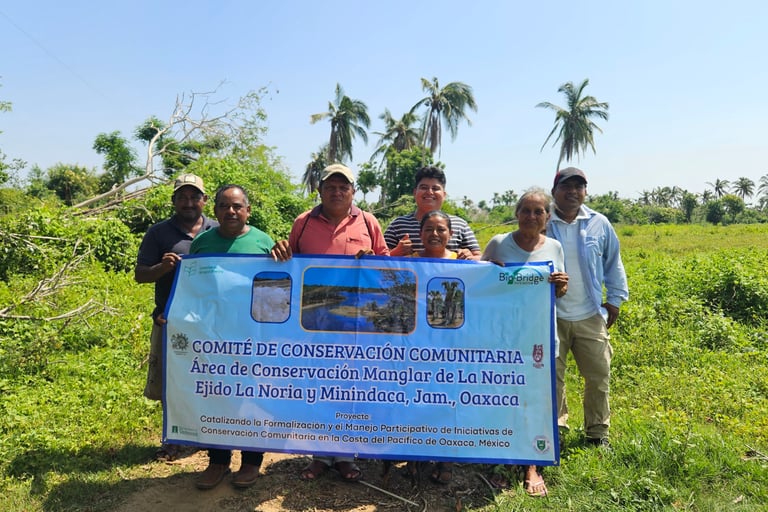 Gracias al impulso de la iniciativa Biobridge, la comunidad de La Noria ha consolidado un avance histórico con la creación de su Comité de Conservación Comunitaria. Tras un proceso de capacitación técnica y organizativa, este grupo de habitantes ha transformado la lucha contra la tala inmoderada en una estructura sólida de gobernanza ambiental. Con esta base, La Noria y Minindaca hoy lideran con autonomía la protección de su biodiversidad y aseguran un futuro sustentable para sus manglares.